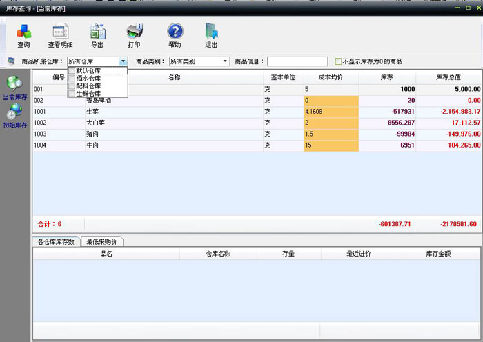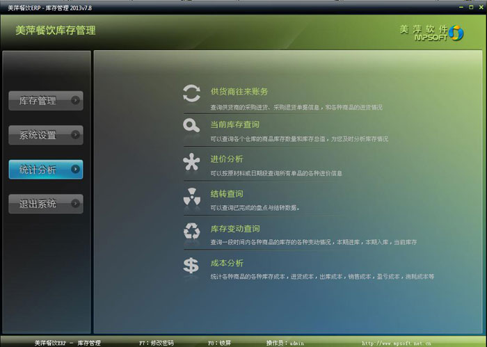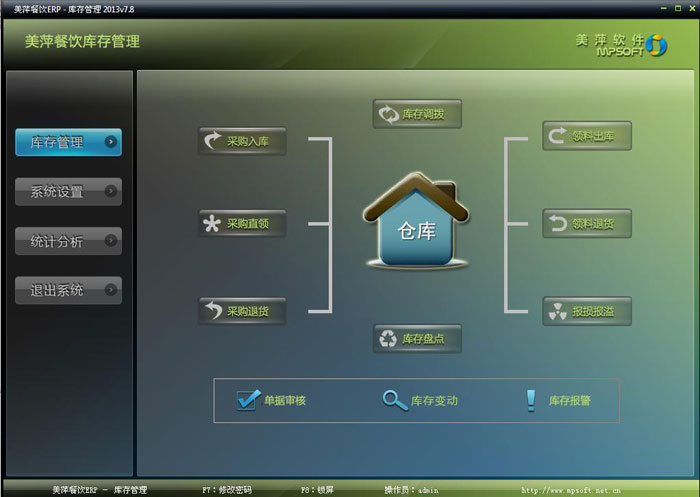 美萍餐饮ERP软件库存管理主要用于采购商品的库存管理,出库、入库、调拨、盘点及退货等操作,在次可以清晰的查询到库存信息,方便及时补充商品库存,查询供应商账单信息,进行成本分析。