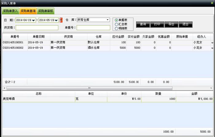 ◇详细的商品进出库记录信息,使库存管理起来一目了然,各种单据清晰可循,每一笔库存变动都清清楚楚的记录在案,不会出现糊涂账