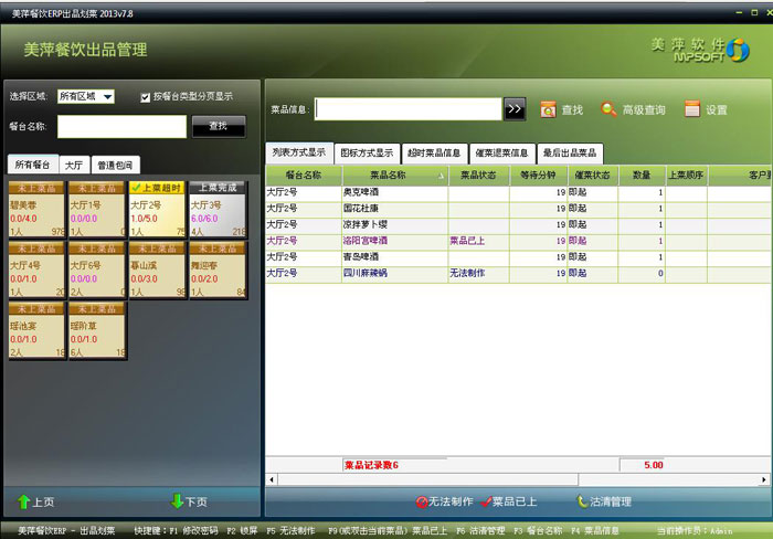美萍餐饮ERP软件—出品划菜功能介绍: