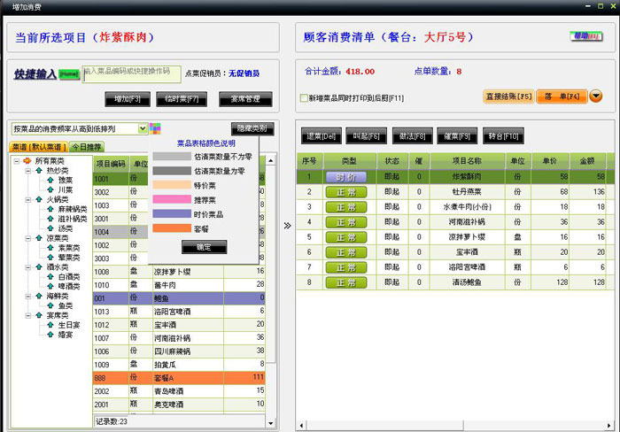 ◇ 提供点菜,沽清,赠送,挂起,叫起,催菜,做法,换菜,退菜,特价,赠送,促销,临时菜等功能;