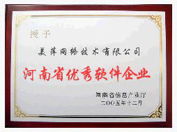 河南省优秀软件企业证书