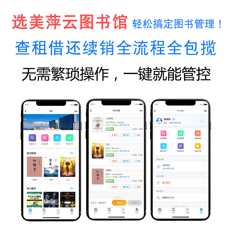 美萍云图书馆管理系统:数字化图书管理全功能解析 在校园、社区、企事业单位阅读空间不断普及的背景下,传统人工登记、手工盘点、纸质台账的管理模式已难以满足高效运营需求。美萍云图书馆管理系统以云端架构 + 全流程数字化为核心,覆盖书刊管理、读者服务、借阅流通、数据统计、系统运维等场景,为各类图书馆提供一站式智能管理方案。