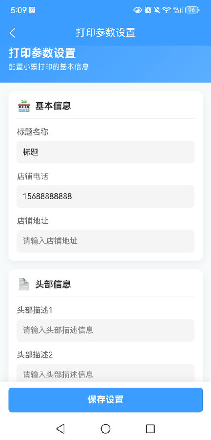 店铺设置:配置店铺名称、电话、地址等基础信息,同步至打印小票。