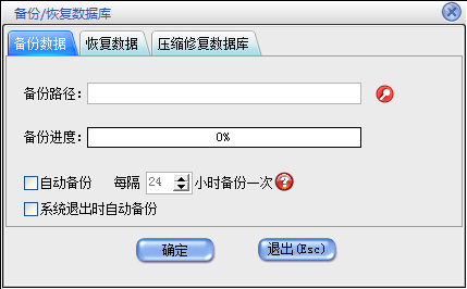 在基本设置中点击"系统维护"按钮,打开系统维护窗口再点击"备份/恢复数据库"按钮打开如图11界面。在备份数据页中选择备份的路径,如果需要自动备份就选中"自动备份"再选择每隔几小时备份一次,系统将根据设置自动备份数据库。在恢复数据页中选择恢复文件,点击"确定"即可。