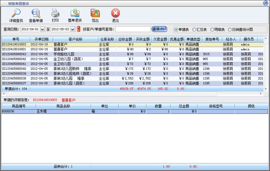 统计报表:完整的统计查询功能,每张单据每次收款付款都可以清楚的反映。