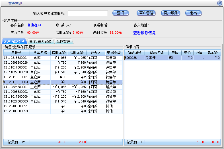 业务管理:进行商品业务,顾客退货,销/退单据和当前库存查询,POS业务统计,与客户的往来帐务。