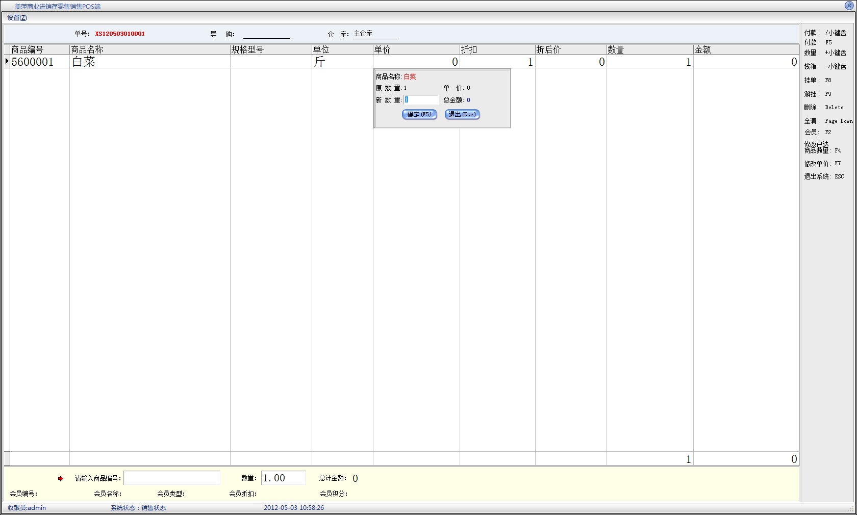 商品业务:进行商品的业务工作,用户可以通过输入商品的条码,编号来选择商品。